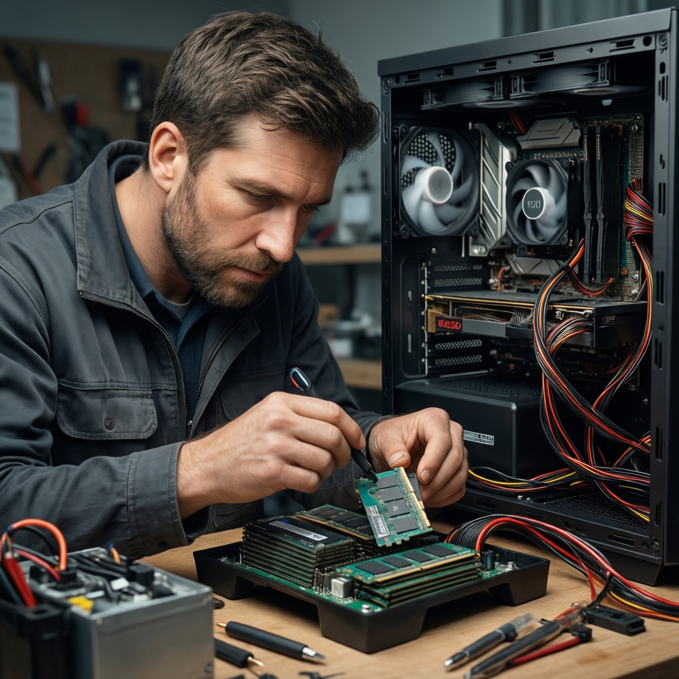 - "Компьютер тормозит везде" (офис/учёба/браузер): SSD под систему + при необходимости добавление ОЗУ. Самый предсказуемый способ ускорить отклик и загрузки без замены платформы.