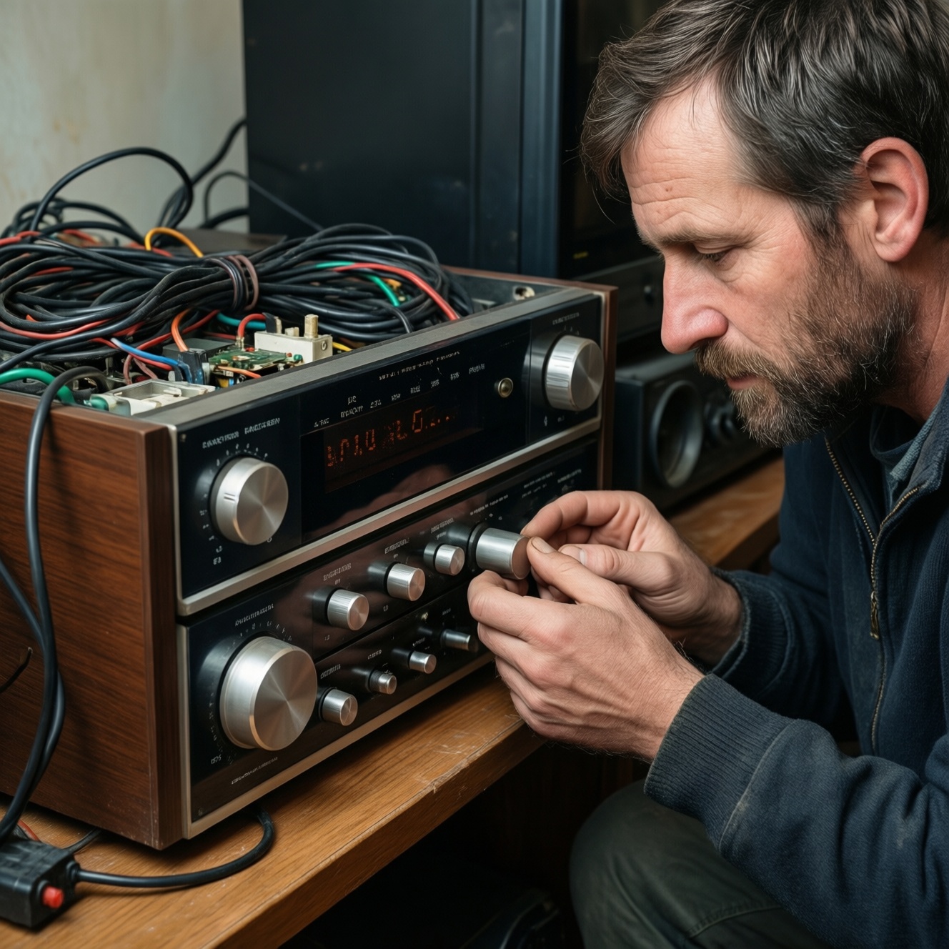 5. Сделайте короткий функциональный прогон. На минимальной громкости проверьте баланс каналов, работу регуляторов, переключателей, входов/выходов. Шорохи при вращении ручек часто лечатся чисткой, но "плавающий" канал и уход в защиту - серьезнее.